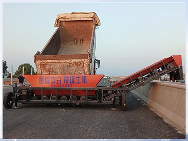 恒睿中分带填土机的侧向输料设计是其环保性能的主要体现。传统人工填土过程中,物料落地现象普遍,不仅污染路面,还需要额外的清理工作,既耗时又不符合环保要求。而恒睿中分带填土机通过侧向输料,将物料直接输送至中分带内,从根本上避免了物料落地污染路面的问题,减少了路面清理成本与环保风险,严格符合绿色施工的各项标准。这一设计在公路改扩建工程中更为重要,有效保护了原有路面,为后续施工奠定了良好基础。