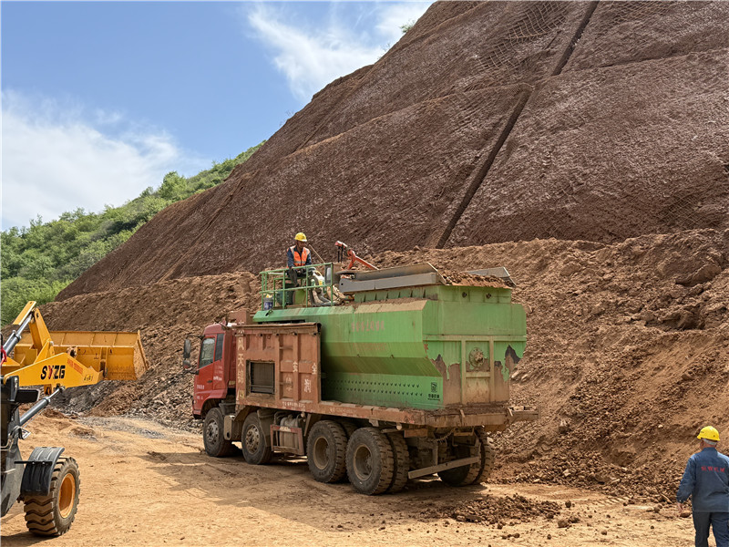 恒睿智能遥控喷播机的核心竞争力在于其搭载的智能干湿土筛分系统,大筛盘设计可直接实现整铲上料,无需人工分次投料,快速完成筛分除杂作业,全程无需人工频繁干预,既大幅提升施工效率,又从根源上避免管道堵塞问题,保障施工流程顺畅。同时,恒睿智能遥控喷播机采用远程遥控操作模式,操作简单易懂,施工人员可在安全区域完成全部作业,彻底远离陡坡、高坡带来的坠落、坍塌等作业风险,兼顾施工安全与便捷性。此外,设备喷头可灵活调节角度与方向,完美适配各类凹凸不平的复杂坡面,结合90米高扬程能力,轻松覆盖各类高陡山体,作业灵活性与适配性大幅提升。