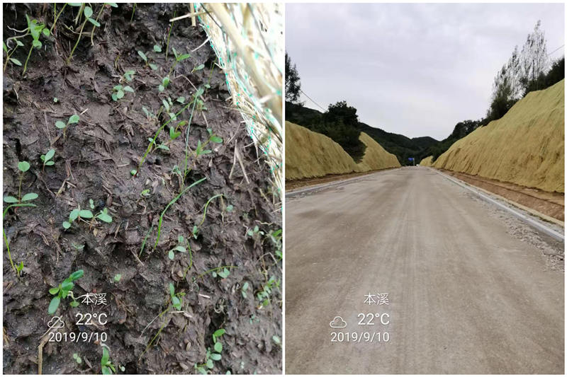 辽宁省本溪市属于中温带温润气候,低积温地带,全年平均气温6.1-7.8摄氏度,雨量集中在七、八月份。“八山一水半分田,半分道路和庄园”是对本溪地区多石质坡面很好的描述。该工程使用了恒睿客土喷播机配合“纤维骨架团粒结构”专利技术,很好的解决了防雨水冲刷难题,同时喷播的土壤形成蜂窝状结构,保水、疏水作用提供植物生长所需的水份,景绣有机纤维菌肥提供植被所需营养成分,有利于植被生长成坪快。根据气候特点科学地选择景绣草种,草灌结合形成自然生态丛林,打破边坡绿化行业内“一年绿,两年荒,三年死光光”的整体现状。恒睿客土喷播设备、喷播技术和喷播绿化效果得到客户地认同!