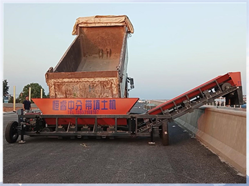 恒睿中分带填土机的同步行走布料系统堪称行业突破。设备可与土方车保持准确协同,在行进中完成自动填土与横向输料,单台设备的作业效能相当于多名工人协同操作。实际施工数据显示,相较于人工填土,其效率直接提升约 3 倍,原本需要 10 人团队 3 天完成的作业,如今仅需 1 台设备 1 天即可达标,大幅缩短了施工周期,为工程提前完工提供了坚实保障。同时,依托液压驱动技术,恒睿中分带填土机的输料过程稳定顺畅,避免了人工操作中常见的物料堆积不均问题,填土均匀度完全符合施工规范,从源头减少了返工风险。