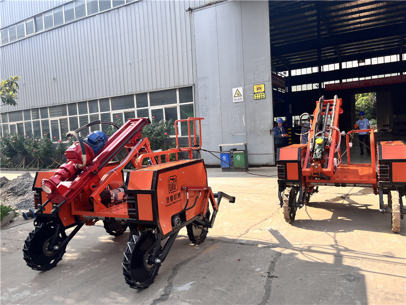 在施工便捷性方面,遥控爬坡钻机深度贴合边坡复杂工况。搭配 3.5 米长钻杆时,可一次性完成 3 米深度钻孔作业,无需中途拆装钻杆,精简工序、缩短工时。同时,设备搭载自主遥控爬坡功能,能在崎岖、陡峭的边坡地形自主行驶移位,无需额外吊装设备辅助,显著简化现场施工流程,降低辅助作业成本与安全风险。无论是高陡边坡、凹凸坡面还是狭窄施工区域,遥控爬坡钻机都能稳定抵达作业点,保障施工连续性与安全性。
